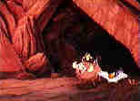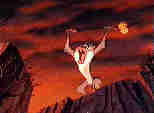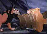 Als Simba auftaucht versucht Scar ihm wieder ein schlechtes Gewissen zu machen, indem er die Geschichte aus der Schlucht wieder aufgreift. Scar zwingt Simba zu sagen, dass er damals Schuld am Tod von Mufasa war. Die Löwinnen sind entsetzt. Simba wird durch Scar einen Felsvorsprung herunter gedrängt. Er hängt nun so an diesem Felsen, wie Mufasa damals in der Schlucht. Scar verrät ihm, dass er damals Mufasa getötet hat. Durch die Wut, die dies in ihm hervorruft kann sich Simba retten und springt Scar an. Scar soll allen erzählen, dass er damals