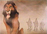 wieder zurück käme. Simba rennt weg und Scar schickt Hyänen hinter ihm her, um ihn zu töten. Simba kann entkommen und läuft in eine Wüste hinein.