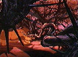 Scar sitzt mit Simba in einer Schlucht. Scar erzählt ihm, dass er für ihn und seinen Vater eine Überraschung habe. Scar geht fort um angeblich Mufasa zu holen, doch er gibt ein Zeichen an die Hyänen, die in das "Geweihte Land" eingedrungen sind, dass sie eine Herde Gnus in die Schlucht jagen sollen. Simba versucht den Huftieren zu entkommen und hält sich an einem dünnen Baum fest. In der Zwischenzeit rennt Scar zu Mufasa und erzählt ihm, wo Simba ist.