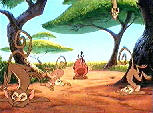 Man sicht, wie Simba wächst und langsam erwachsen wird. Simba geht mit den beiden unbeschwert durchs Leben und hat seine Vergangenheit vergessen.